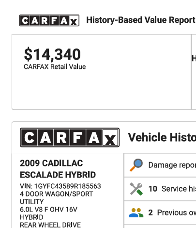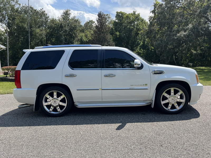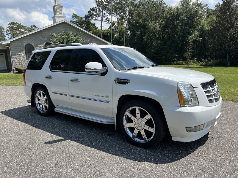 2009 Cadillac Escalade Hybrid with only 77k miles. This is a 2-owner vehicle with a clean Carfax report. It has all the features you would expect; power windows, power door locks, sunroof, air conditioned and heated front seats, power adjustable pedals, backup camera and blind spot monitoring. The hybrid engine allows this to get 20 mpg city and 21 highway (compared to the non-hybrid rated at 12/19). The vehicle is in amazing shape for the year and needs nothing. The factory entertainment / DVD system works. BOSE stereo. This vehicle has been converted from air suspension to coil springs, so one less thing to worry about. Priced at $11,950 and NO DEALER FEES. Call or text David at 407-953-8238