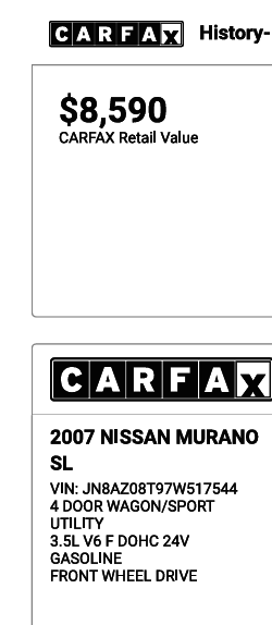 This 07 Murano is like new with just 55k miles. 3 owners always a Florida car. Power windows, power mirrors, power door locks, power leather heated seats, cruise control, power sunroof, steering wheel controls, alloy wheels, good tires, cold air. Powered by a 3.5 liter 6 cylinder engine with an automatic transmission. Priced well below the CARFAX valuation of $8,590 and NO DEALER FEES. Call or text David at 407-953-8238.